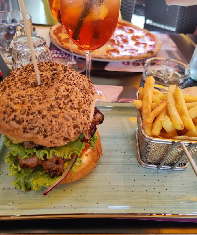 Il nostro menu spazia tra pizze fragranti e saporite, hamburger artigianali succulenti, carni grigliate di qualità, piatti da ristorante e un bar sempre pronto a servire colazioni, aperitivi e bevande per ogni occasione. Ogni piatto è pensato per esaltare la qualità delle materie prime, selezionate con cura ogni giorno.